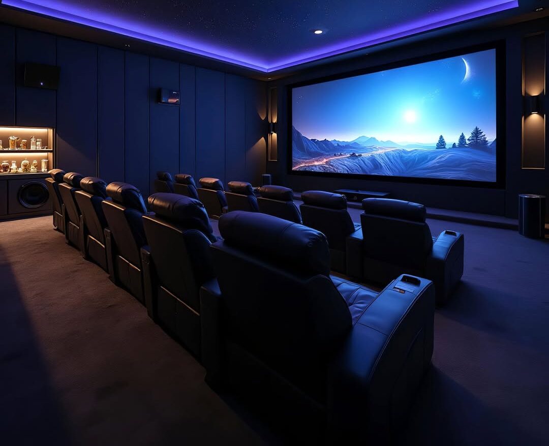 Our Home Theater services include everything from high-definition projectors and crystal-clear screens to state-of-the-art surround sound systems that make you feel like you’re right in the middle of the action. We also offer customizable seating arrangements, smart lighting controls, and acoustic treatments to ensure optimal sound quality and viewing comfort.